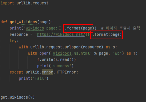 print("wikidocs page:{}".format(page)) # 페이지 호출시 출력