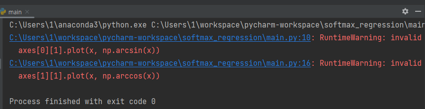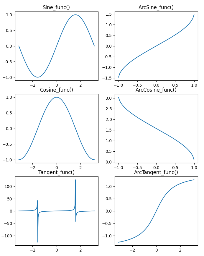 RuntimeWarning: invalid value encountered in arcsin axes[1][1].plot(x, np.arcsin(x))